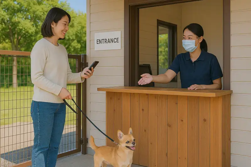 GREEN PAW ドッグランは、自然に囲まれた広々とした芝生エリアで、愛犬と飼い主が安心して過ごせる時間を提供する完全予約制のドッグランです。